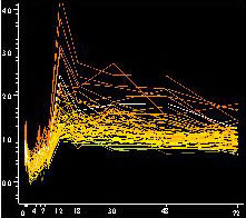 Of those changes, the researchers identified six distinct patterns, or profiles, with clusters of genes showing similar increases, decreases and mixed changes in the production of messenger RNA.