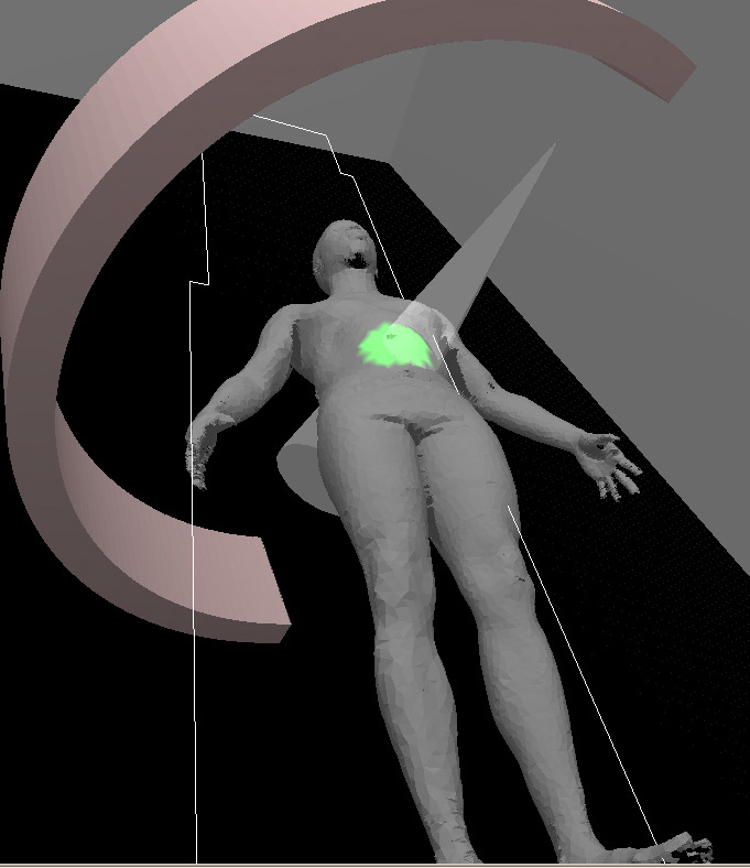 This visualization of the X-ray beam and its location with reference to a graphic model of the patient presents the physician with real-time visual feedback, allowing him or her to make the appropriate adjustments.