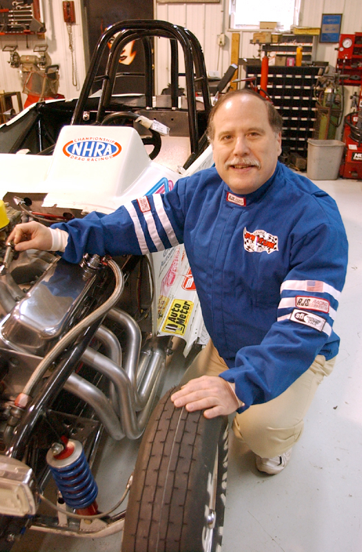 After work Krause is immersed in the roaring, raucous arena of drag racing, where automobiles morph into speed monsters capable of covering a quarter mile in a few blinks of an eye; where top fuel dragsters traveling 300 miles an hour leave the starting line at five-times the force of gravity.