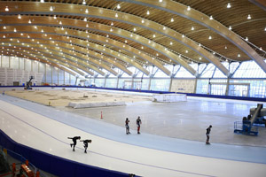 The Oval, which sits on the banks of Vancouver's Fraser River, will provide the long-track speed skating venue for the 2010 Olympic Winter Games. The building is vast and it is distinguished in particular by its elegant internal spaces that feature wood trusses and innovative ceiling panels.