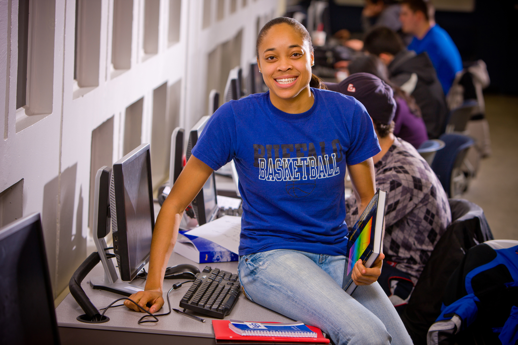 But Brown's real excitement, that even outpaces the feeling of mastery she gets on UB's Alumni Arena basketball court, comes in the classroom. Her ability and passion for building and programming computers -- as well as the electrical components that go along with it -- is what really makes her go.