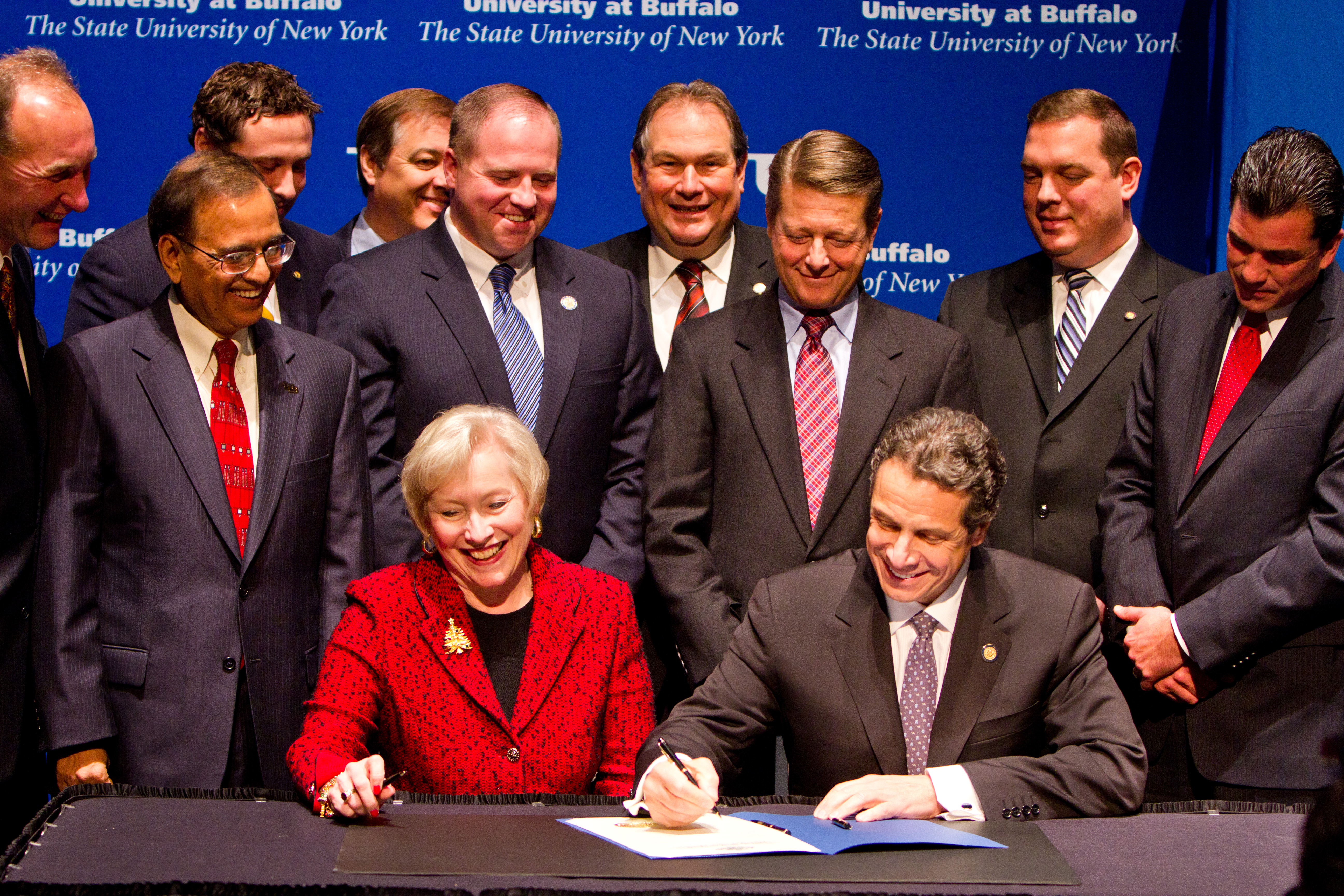 "The SUNY campuses continue to realize the benefits of Governor Cuomo's vision and leadership for a stronger New York and a more competitive public university system," said SUNY Chancellor Nancy L. Zimpher. "By ensuring affordability, by hiring new faculty and increasing access, and by moving the medical school downtown and creating nearly 3,000 health care and construction jobs for Western New York, the University at Buffalo's NYSUNY 2020 plan promises to better serve students and positively impact both the local and state economies. This is truly a proud day for the University at Buffalo, for SUNY, and for all of New York State."