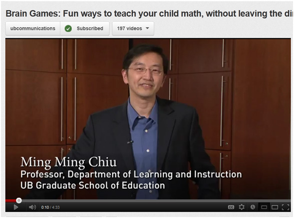 That's the discerning approach of University at Buffalo Graduate School of Education professor Ming Ming Chiu, and it's based on decades of teaching teachers and watching how students learn. Known for helping parents find teachable math moments, especially at the dinner table and on living room sofa, Ming has devised new ways to make kids comfortable with the ways of math.