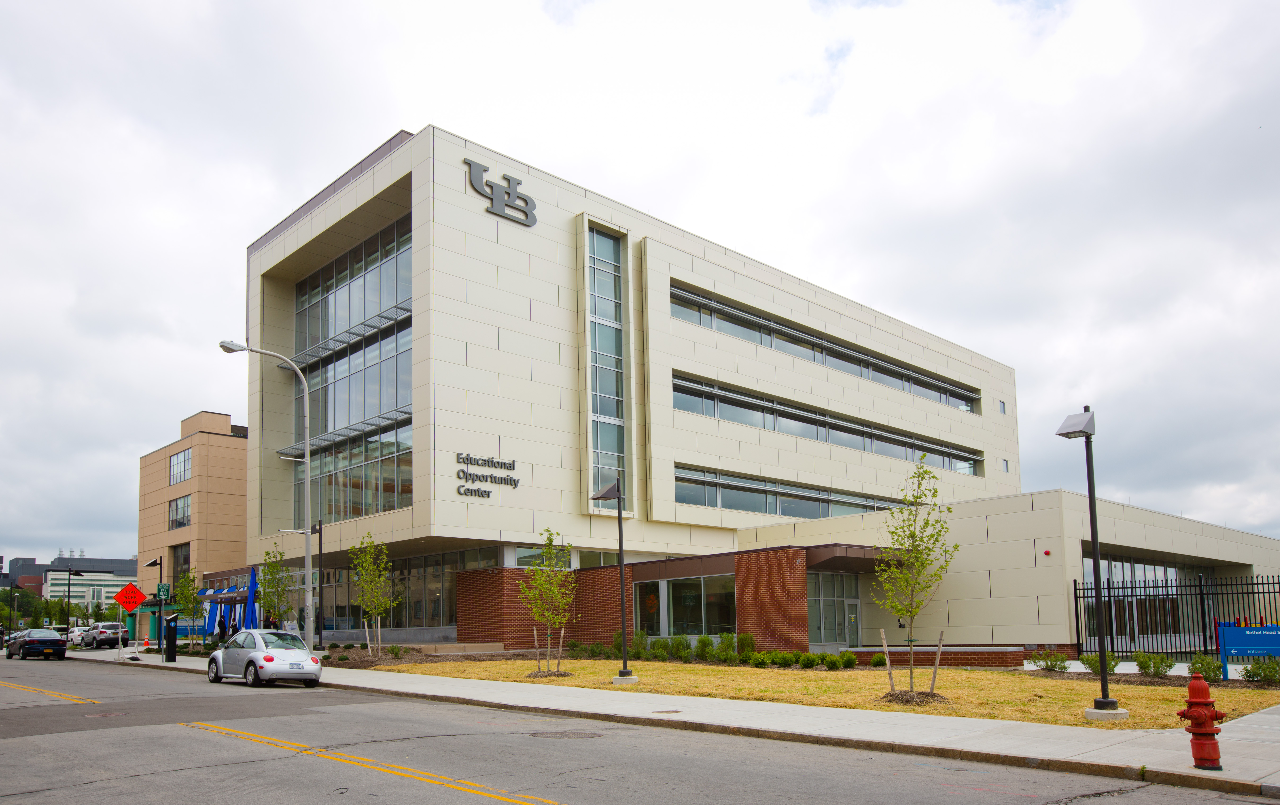 Designed by Holt Architects, P.C., the interior of the LEED Gold-designed facility focuses on transparency and flexible technology in all classrooms, computer labs and student spaces. The new EOC is linked to the UB Downtown Gateway building at 77 Goodell St. (the former M. Wile building) via a 5,000-square-foot connector with an adjacent conference center. UB’s Downtown Gateway building opened in 2009 and houses UB’s Office of Government and Community Relations, as well as other offices and programs geared for the community.