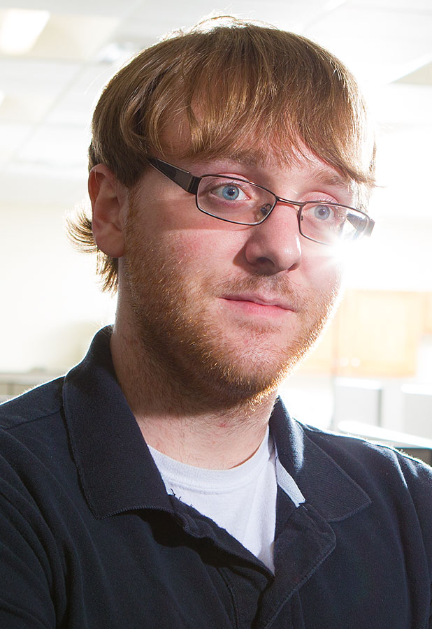 Richard Bottom, left, and Iman Borazjani hope their research on how stingrays swim will lead to the design of new underwater vehicles. (Photo: Douglas Levere)