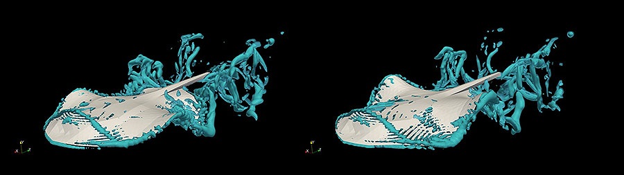 A side view of the "QCritera" variable. The blue bubbles indicate vortices. Image: Richard Bottom