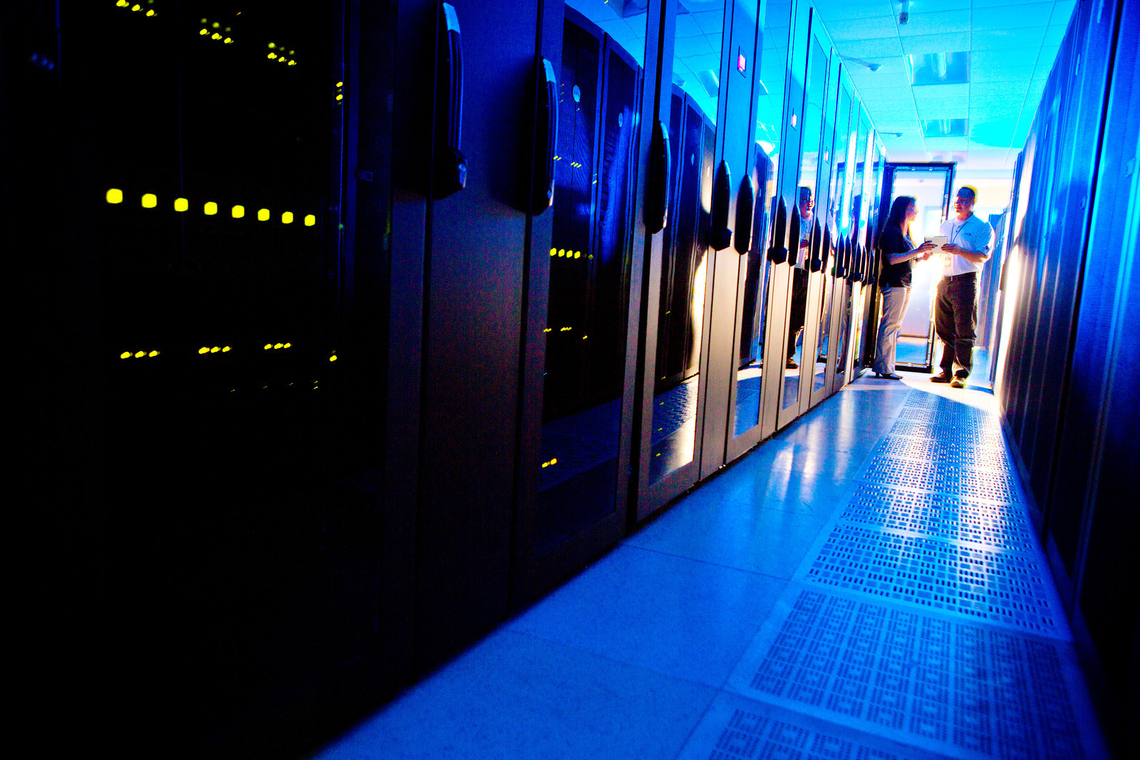 Researchers inside the University at Buffalo's Center for Computational Research, a National Science Foundation supported supercomputing facility. Credit: Douglas Levere.